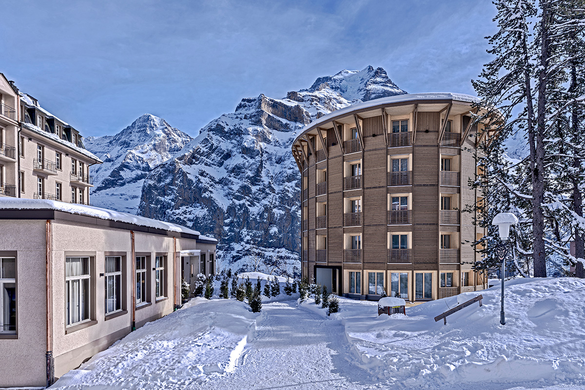 Moderner Holzbau auf 1’650 Metern Höhe – Elliptische Dependance des Hotel Palace Mürren